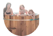 Купели круглые "Фурако" из кедра с вставкой из полипропилена и дровяной печью